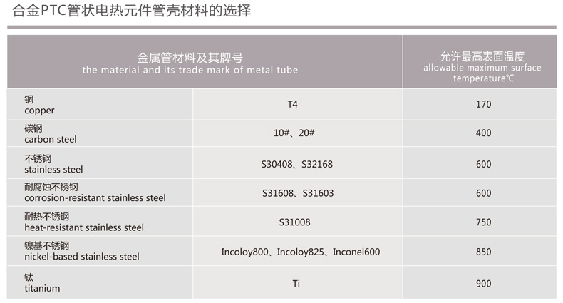 ◆ 由金屬管殼、引出棒(不發熱區)、氧化鎂粉、PTC合金電熱絲等組成。