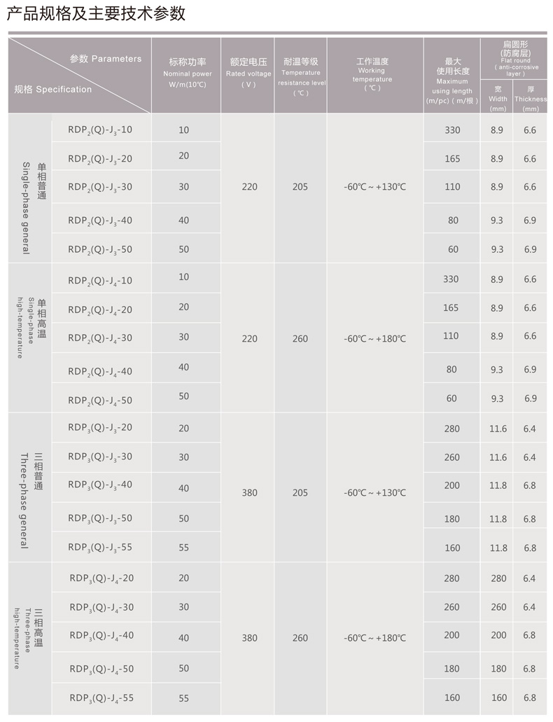 ◆ 三相并聯電熱帶最大使用長度是單相電熱帶的2~3倍左右;