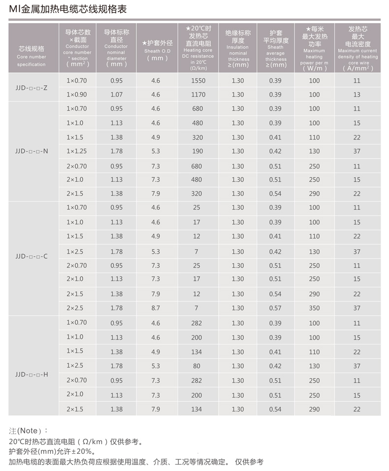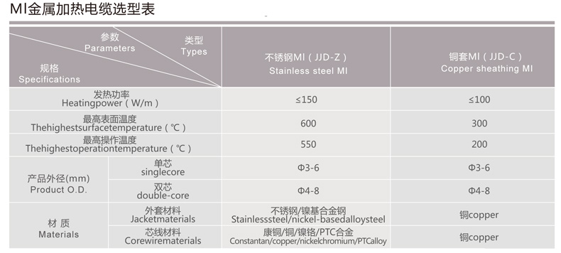 MI金屬加熱電纜