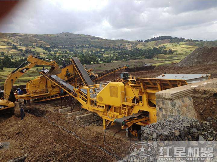 主要破碎設(shè)備:顎式移動破碎機(jī)、反擊破+振動篩移動破